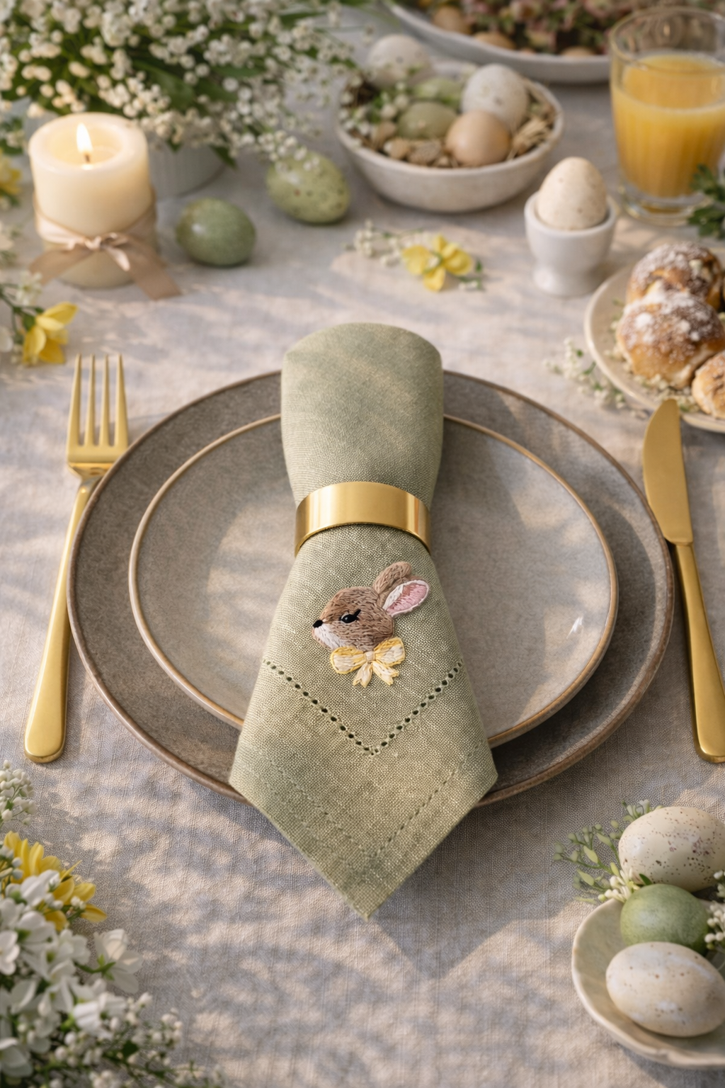 Subtelna, oliwkowa zieleń wprowadza świeżość i lekkość do wielkanocnego stołu.