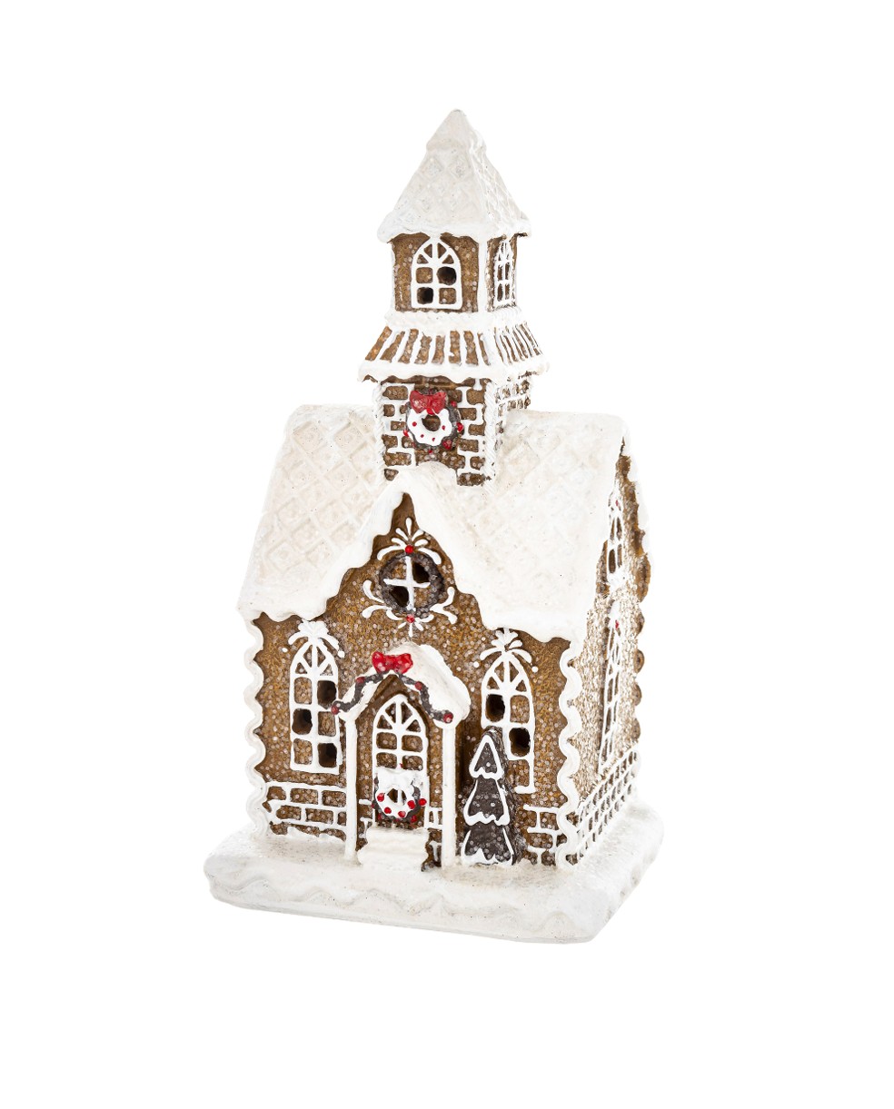Figurka FROSTER to uroczy piernikowy kościółek z podświetleniem LED, który zachwyca detalami i bajkowym wyglądem. Misterne zdobienia, zaśnieżony dach i subtelne światełko tworzą niepowtarzalny klimat świąt.