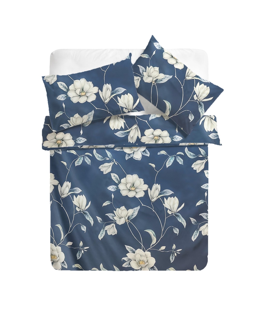 Delikatne, białe kwiaty magnolii na granatowym tle tworzą elegancki kontrast, który podkreśli styl Twojego wnętrza.