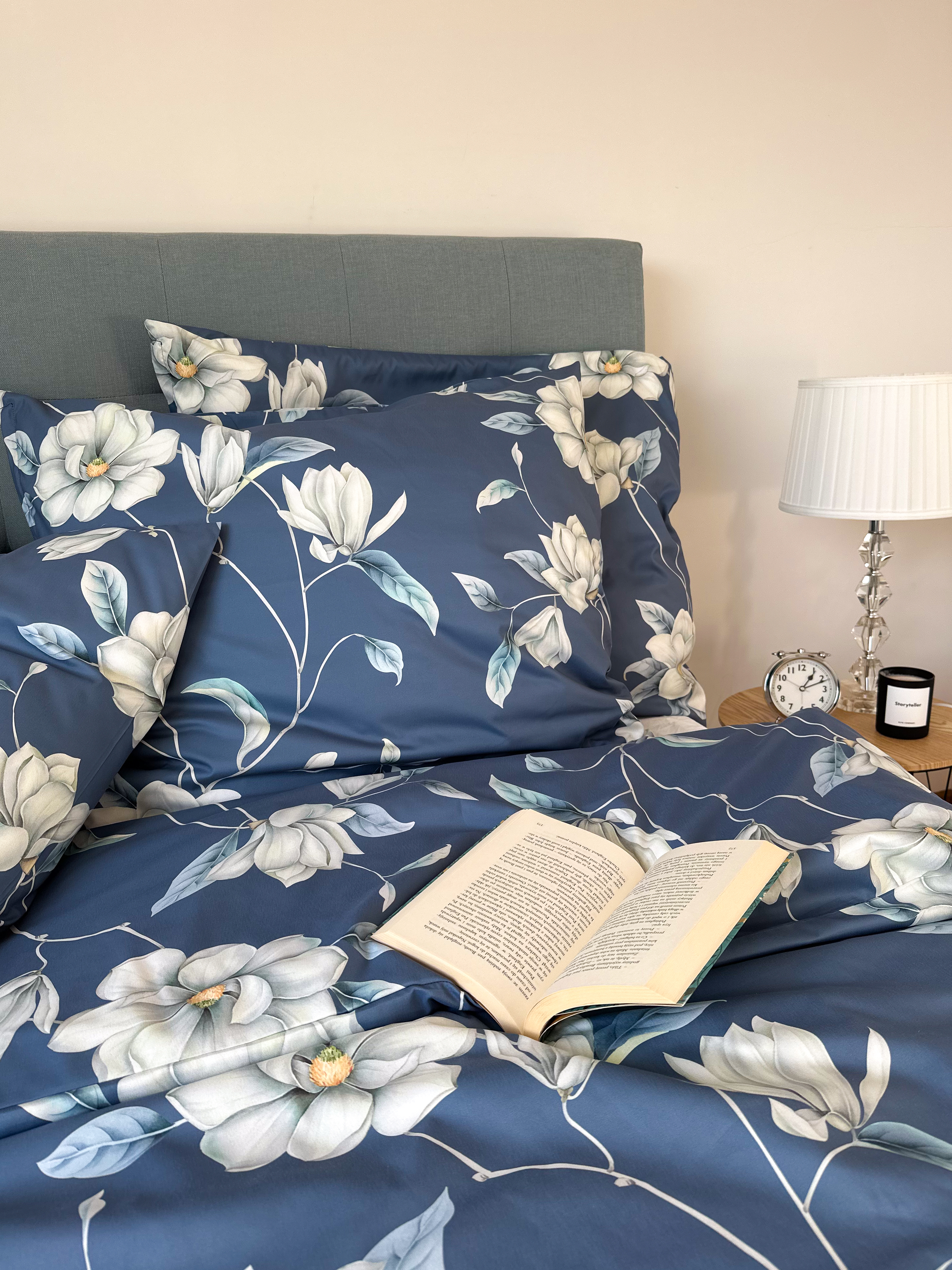 Ciemne tło z kontrastującymi, delikatnymi kwiatami magnolii doda klasy Twojej sypialni, a miękka mikrofibra zapewni spokojny, komfortowy sen.