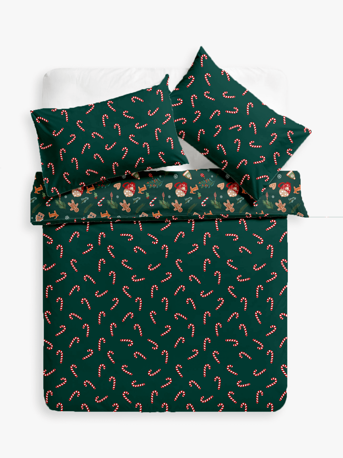 ✔️ Dwustronna pościel – z jednej strony świąteczne motywy, z drugiej klasyczne cukrowe laski