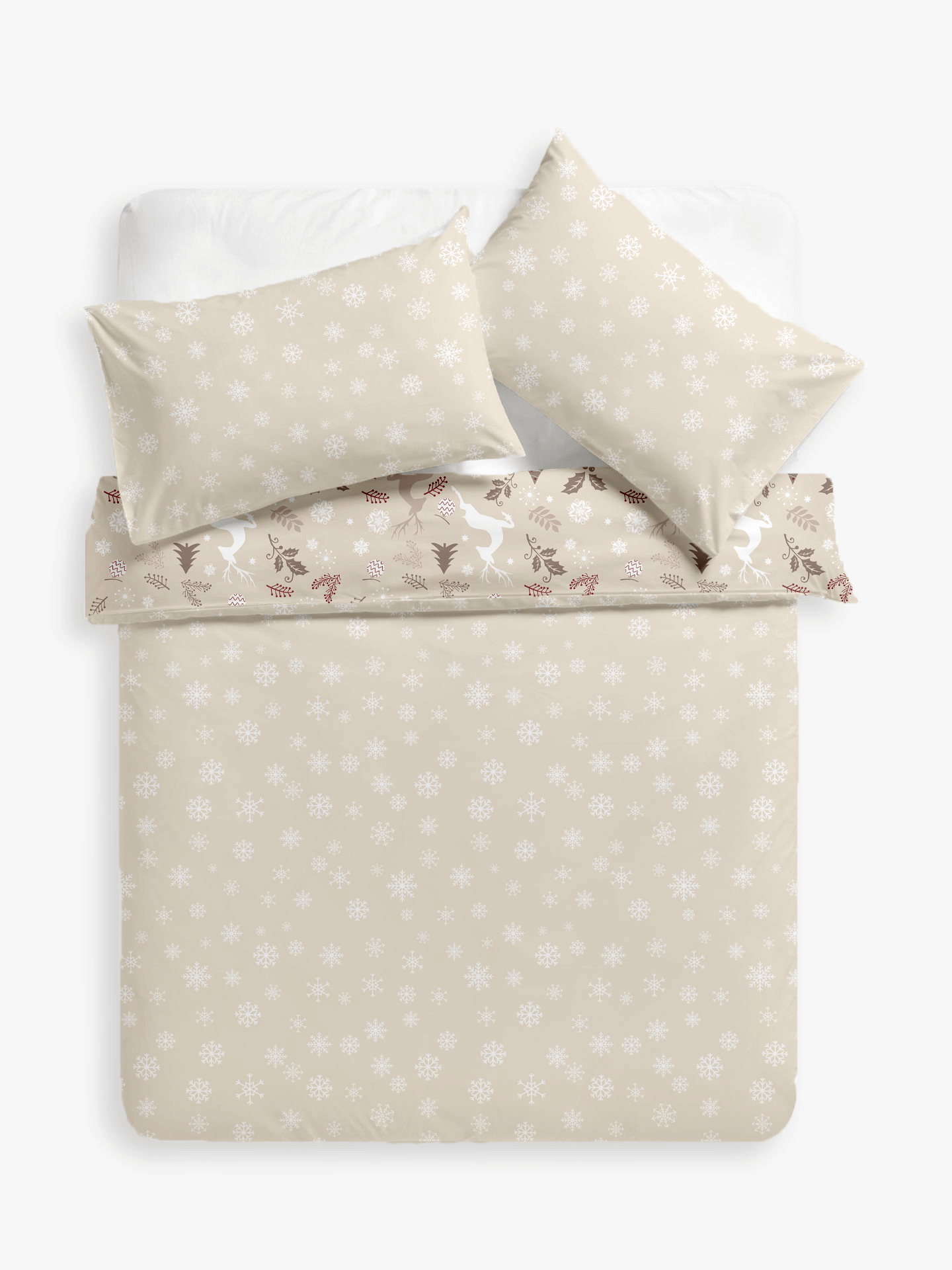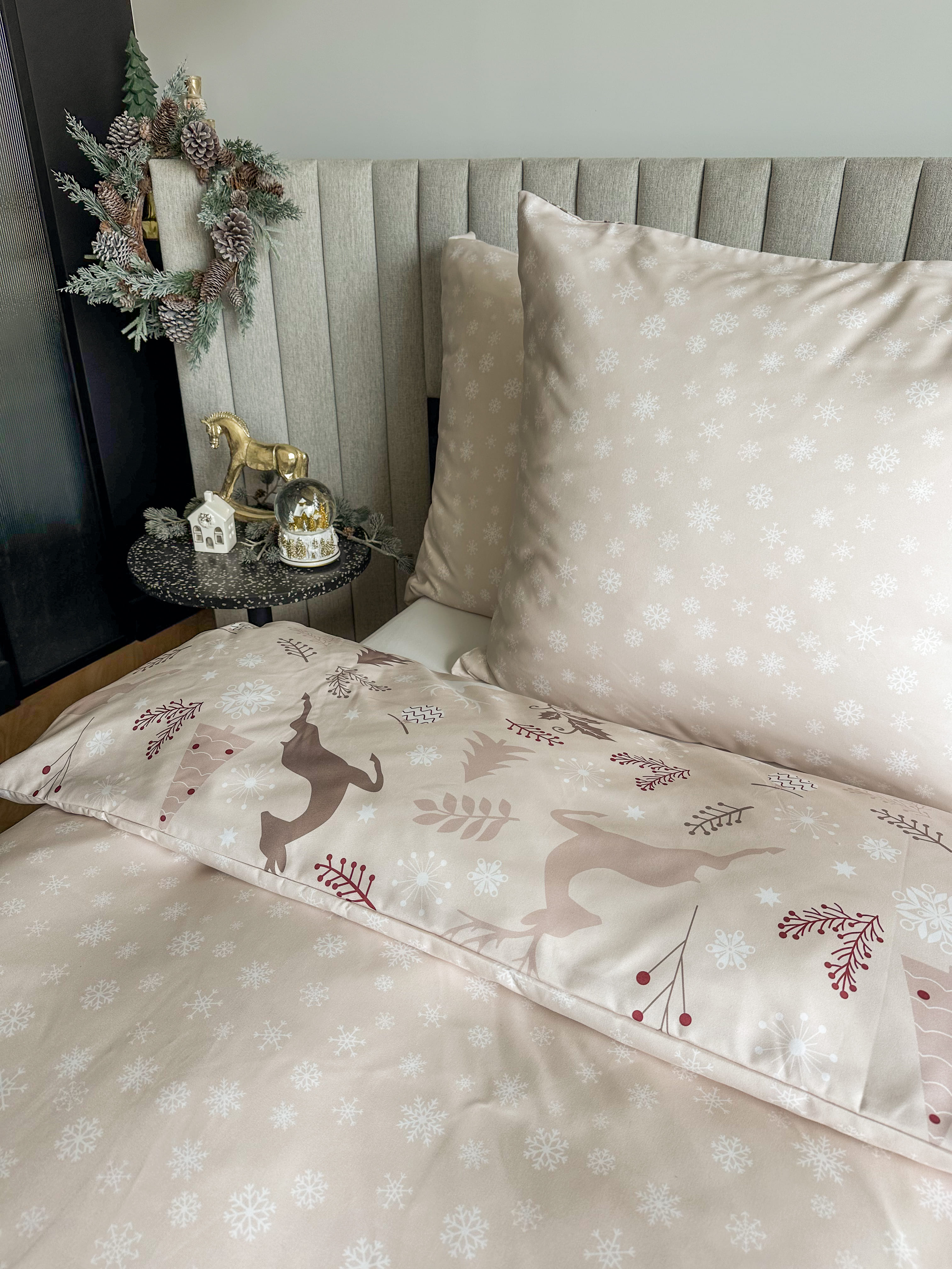 ✔️ Dwustronna pościel – wybierz stronę z reniferami lub delikatnymi śnieżynkami